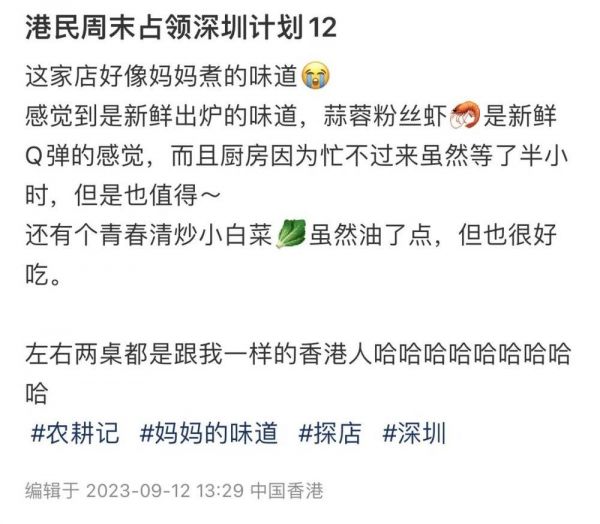 如今,和她一样的港人已经不在少数。为了一尝深圳美食,港人们甚至准备了详尽的“占领深圳计划”。