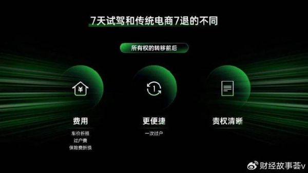 另一方面,7退模式下,退车意味着所有权的来回转移,额外带来两次共计上千元的过户费用,同时还有额外的保险、车价折损等,“同样的车况,从二手车变三手车四手车可能要折损几千块”,杨浩涌透露;而试驾期间所有权没转移的7试,退车无需承担上述成本。