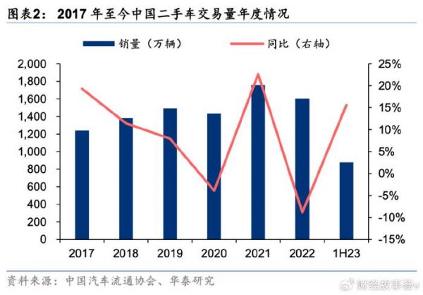乐观的前景,缓慢的进度——假如参考美国新车二手车1:2.8的结构,2023年H1,中国二手车的销量,应该会超过3000万辆。