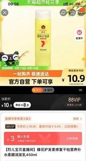 天猫超市售卖的蜂花450ml营养护发素 图片来源:淘宝APP截图