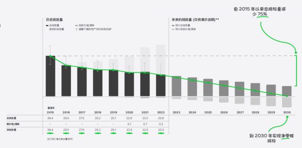 图:苹果的减碳趋势图。| 图片来源:苹果公司《2023年环境进展报告》