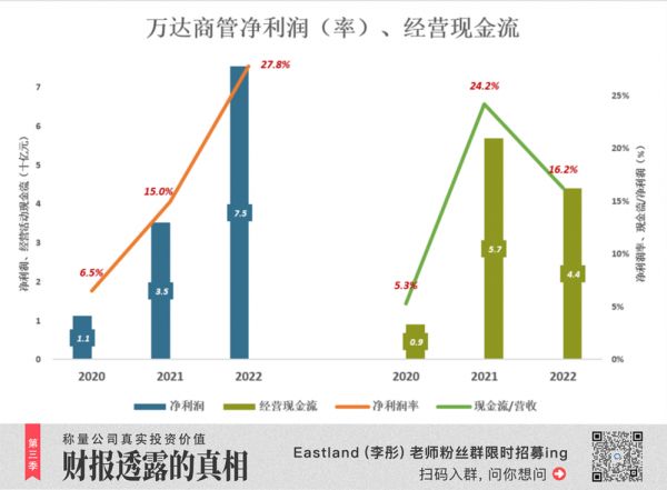 万达商管净利润增速10倍于营收增速:2022年净利润75.3亿、较2020年增长578%,同期营收增长57.7%。