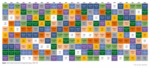 你把这些东西放在一起,其实会发现,这都是追涨杀跌的看法,因为今年到目前为止,各个资产价格走势就是: