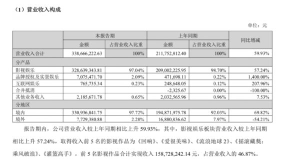 更早之前的三年中,华谊兄弟获得高比例、大额收益的电影,仅《八佰》一部,达6~7亿元票房。