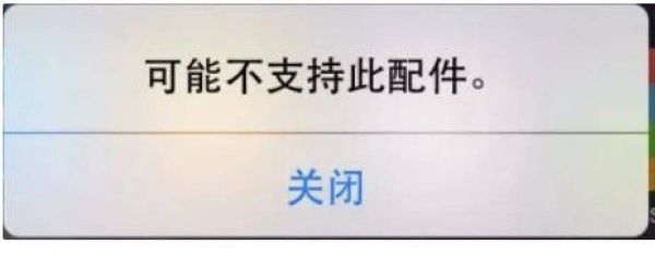 这颗小小的MFi认证芯片,既是安全质量认证芯片,又是身份识别芯片。与iPhone连接后,系统会读取该芯片,以确认是否获得官方授权。使用没有获得授权的连接线,就会收到如下图所示的弹窗,并且无法保证充电的速度,也可能充得很慢甚至完全充不进去。