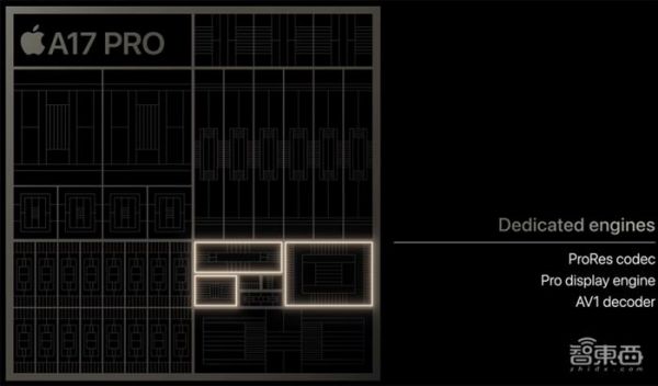 该芯片还内置ProRes编解码器以及一个显示引擎,用来驱动ProMotion自适应刷新率技术;并包括一个专用的AV1解码器,能够为流媒体服务提供更高效、更高质量的视频体验。
