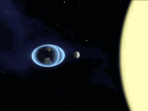 其次,如果把日月看作一个独立系统,地球对日月系统的影响十分巨大。