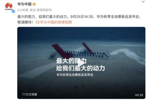 大消息一:华为今天正式官宣,9月25日举办秋季全场景新品发布会。