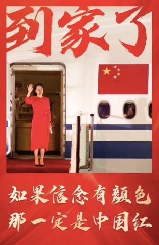 那一天,2021年9月25日,孟晚舟踏上回国的飞机,晚上十点抵达深圳机场,出舱后回到祖国的第一句话,如果信念有颜色,那一定是中国红。。