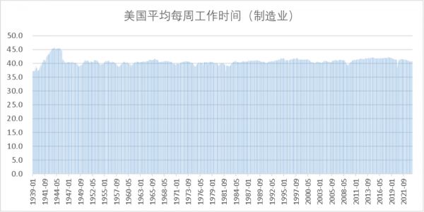 1. 工作时长是有波动的,且波动与经济发展正相关。当经济增速有压力的时候,由于裁员等原因,工作时长会阶段性往下走,最典型的就是2008~2009年全球金融危机期间;经济形势好的时候,大家也乐意多加班搞钱。
