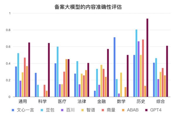 综合评分:“GPT4>豆包>文心一言>商量>智谱>ABAB>百川”,但平均答对率都不超过65%。
