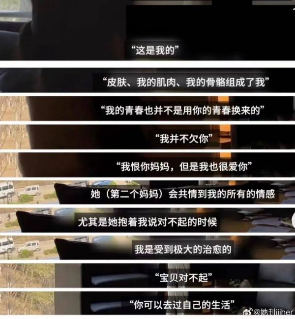 在请来的母亲身上的镜头面前,邹雅琦赤裸地表达了自我。“我的青春并不是用你的青春换来的。我恨你,但我也很爱你。”邹雅琦对这位扮演母亲的人说出了真正想对母亲说出的话,这位“妈妈”也很好地共情了她的感受,给了她一个拥抱,在采访中,她表示自己获得了巨大的疗愈。