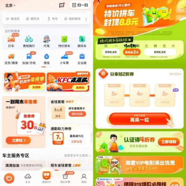 周末抢免单、周末抢 5 折、通勤抢免单、热门目的地 9.9 元、15 公里内拼车 8.8 元……网约车的价格战今年也被重新挑起。