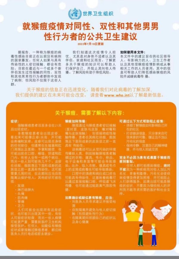 2022年7月23日,世卫宣布人感染猴痘(人类猴痘,HMPX)疫情为全球关注的公共卫生紧急事件(国际关注的突发公共卫生事件)。这是世卫组织当前可以发布的最高级别公共卫生警报。