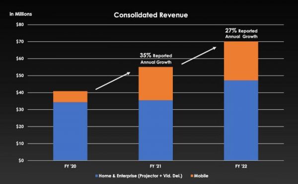 另一方面,手机厂商对影像质量的追求,也使得第三方芯片供应商发展迅速。Pixelworks是一家具有20多年历史的为视频应用提供视觉显示ASIC芯片的供应商,早在2004年,其便在中国设立了子公司逐点半导体。随着手机这样的移动设备对视觉体验需求的增加,使得Pixelworks近几年在移动设备领域大放异彩,甚至成为部分手机厂商的一大宣传点。例如最近,一加Ace 2 Pro智能手机不仅采用了高通的第二代骁龙8移动平台,还搭载了逐点半导体的一颗X7专业渲染芯片,在游戏帧率和画质体验上得到了很大的提升。此外,诺基亚、荣耀、vivo、oppo、红米等诸多手机厂商以及不少国内游戏厂商均选择了逐点半导体。随着Pixelworks在手机和游戏产业的影响力持续扩大,其近期开始推出IRX游戏体验品牌为配备其显示芯片的设备提供认证。而从财务数据来看,过去三年,Pixelworks在移动设备部分的营收也有着显著增长。