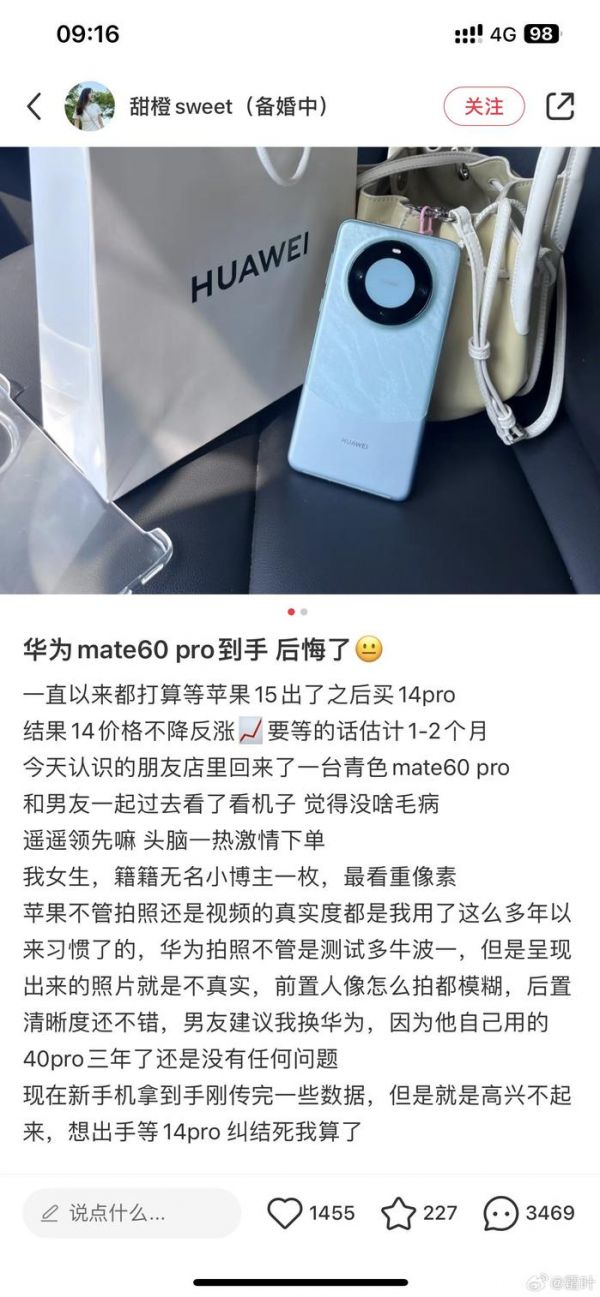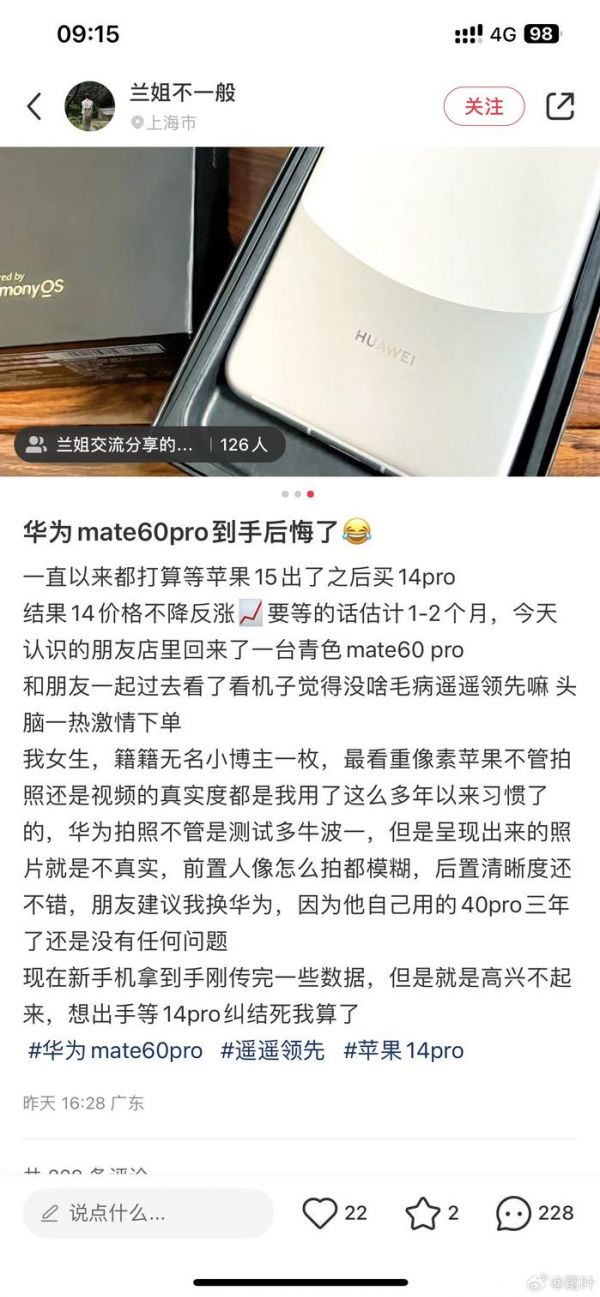 无非是买到了一样的手机,一样的包,坐了一样的车,有一样的朋友店里到了华为mate60的朋友,一样和男朋友去看了买下然后后悔而已。