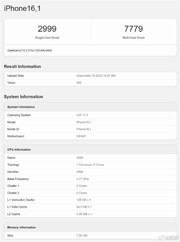iPhone 15 Pro A17 CPU跑分成绩曝光:性能大提升