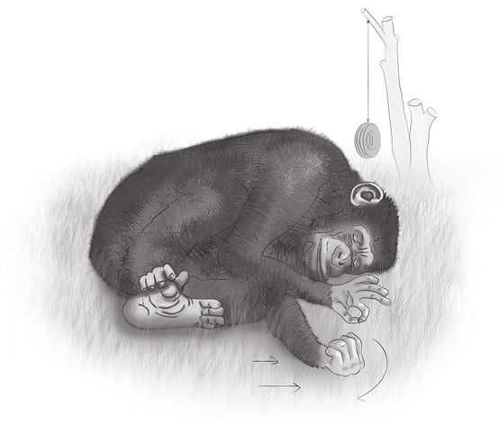 被圈养的黑猩猩瓦休在睡梦中用ASL手势“说话”。在这里,它做“咖啡”这个词的ASL手势,包括用右手做拈物状,用左手做“C”字形,当两只手都从胸部向天花板移动时,前者还绕着后者转圈|图源:《动物会做梦吗》