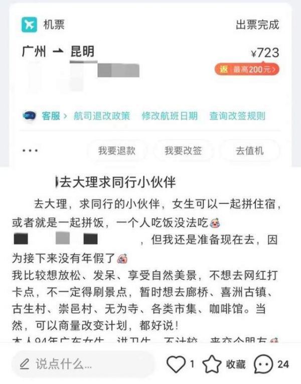 为了不浪费我的假期,我便在社交平台上发帖、还在相关笔记下方留言,希望能够找到一个靠谱的旅游搭子,一起出游。而后,有不少人通过后台私信联系我,希望一同出游。