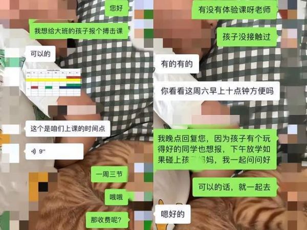 为儿子找到了“搭子”之后,我就开始联系搏击培训班的教练,在详细说了自家孩子的基本情况之后,对方表示,可以先从启蒙班学起,而为了防止交了钱孩子又没有兴趣去学,我特意和教练沟通了试课时间。