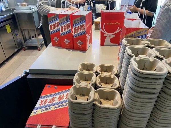 茅台巧克力迅速售罄,两周前风头无两、一杯难求的酱香拿铁却开始过气。《豹变》在工作日走访位于海淀区的两家瑞幸门店,发售当天需要购买两杯酱香拿铁才能获得的联名纸袋,如今已经成为“标品”,随意装着美式或者生椰拿铁。