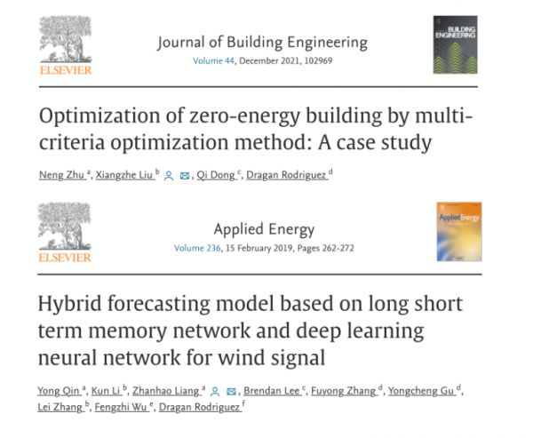 Dragan Rodriguez被列为作者的两篇研究论文,分别发表在期刊Journal of Building Engineering和Applied Energy上。