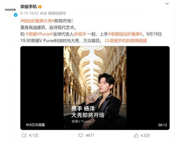 其实,对于智能手机,消费者已经不仅仅满足于其通讯功能了,优秀的设计、时尚精致,成为许多用户的高阶需求。对此,荣耀V Purse应运而生,完美融合科技与时尚,为用户提供了更多的尝鲜选择。9月19日荣耀V Purse科技时尚大秀即将开启,让我们一起期待荣耀准备的更多精彩与惊喜。