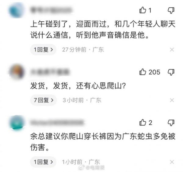 余承东爬塘朗山被偶遇,评论区都是在催发货的……