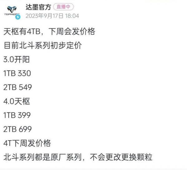 网址: 达墨预热“天枢”新品:将推出 4TB SSD,下周公布价格 http://www.xishuta.cn/newsview90999.html
