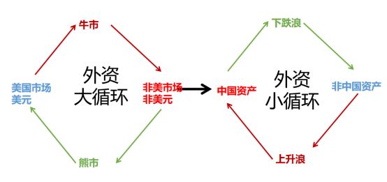 “外资小循环”是全球配置的波动,是资金在各国之间的规模性流动。