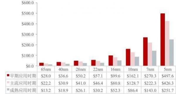 图:不同工艺节点处于各应用时期的芯片设计成本(单位:百万美元);来源:芯原股份招股说明书