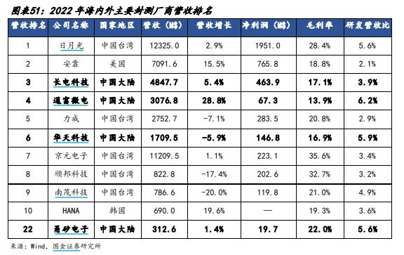 首先要厘清一个潜在的思维误区,虽然国内的半导体行业发展是滞后的,但是封装产业链由于技术壁垒相对低、发展相对早,因此全球竞争力还是可圈可点的。