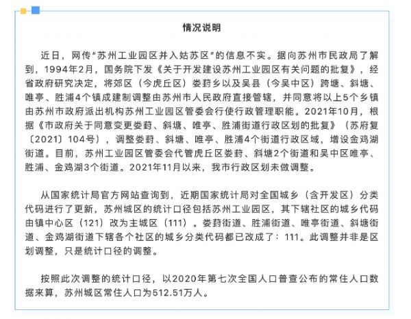 日前,网传“苏州工业园区并入姑苏区”的消息引发关注。