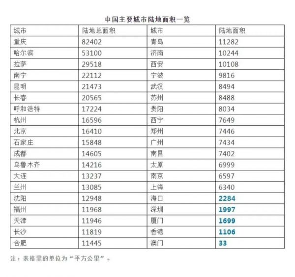与之对比,美国纽约市面积仅为800平方公里,而横跨三州20多个郡的纽约都会区面积也只有1.7万平方公里,远远无法与我国城市相提并论。