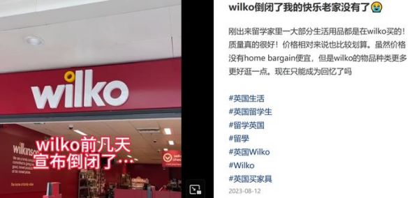 据央视财经报道,成立于1930年的英国老牌连锁零售商威尔科近日表示,由于公司纾困谈判在最后一刻破裂,所有门店将在10月初关闭。