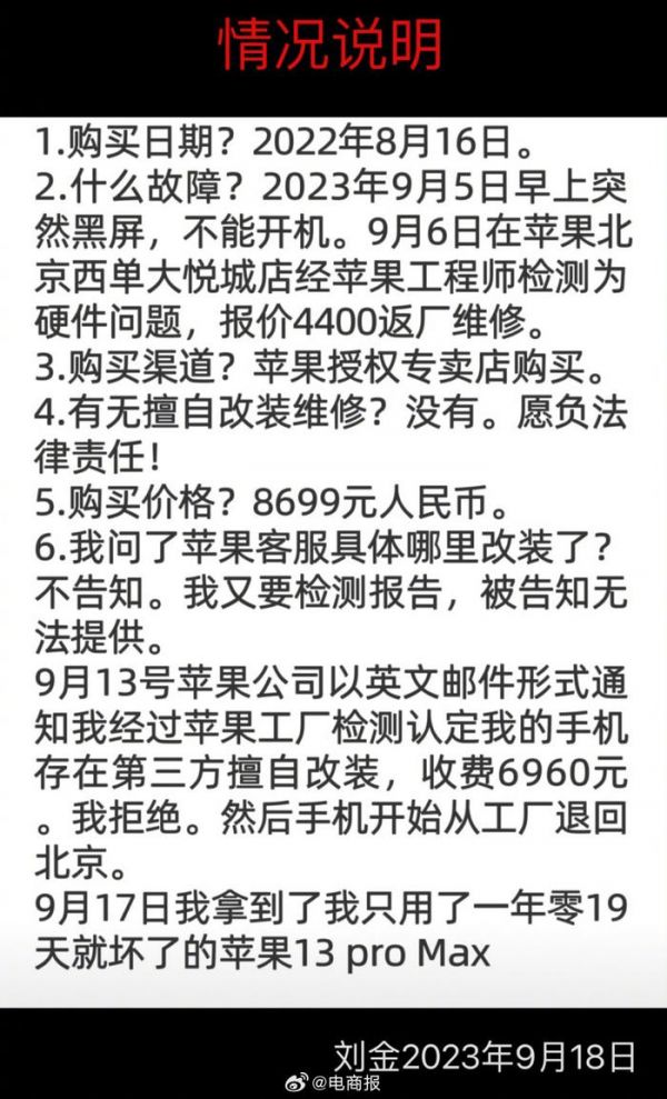 演员刘金苹果店前怒摔iPhone 13 Pro Max 再不买苹果