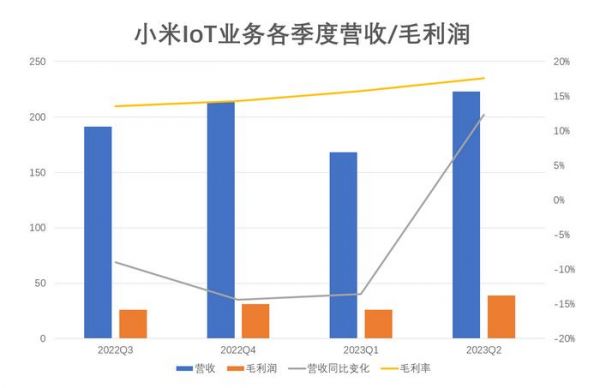 财报显示,小米IoT业务二季度营收为223亿元,同比增长12.3%,高于市场预期的207亿元。从增长曲线来看,小米IoT终于告别了连续四个季度的负增长——此前四个季度分别为-4.4%、-9%、-14.4%和-13.6%,二季度增速也远高于市场预期的4.4%,可以说是打了一场漂亮的翻身仗。
