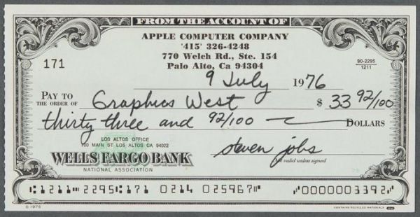 苹果史上第二张支票被拍卖,乔布斯和沃兹签名