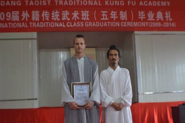 2008年至2009年,武当山已经招收了两届外国学员,但前两年,武当山的国际教学还是“养生”班(healthy class),多是短期班,学员来去随意。2010年,国际武术班正式启动。这一年,师父袁师懋的武馆招收了4个武术班,学制5年,杰克所在的“国际三班”有40名学生。最终坚持下来并出师的,只有13个人。