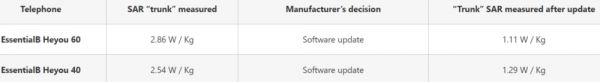 有个叫EssentialIB Heyou的手机,两款都被印度测出过SAR超标,但制造商做了软件更新后就解决问题了(其实就是优化信号搜索时的功率输出,所以不用动硬件,只要做软件更新就行):