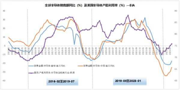 雪球专栏作者愚老头,将中国的基钦周期与全球半导体销售额的同比增速叠加发现,往往每一次中国基钦周期的起点和终点,对应的都是全球半导体销售额同比增速的低点。再看全球半导体最近两次周期的时间节点:2019年6月见底,2023年1月见底。