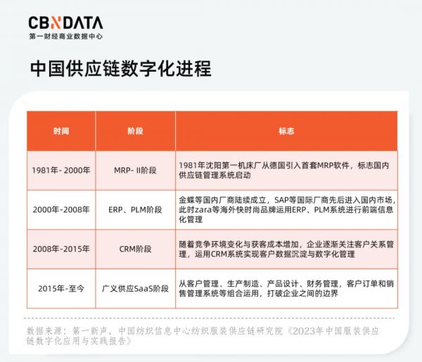 在我国,供应链数字化进程先后经历了前端信息化、客户数字化,现已来到广义供应SaaS阶段,如何打通系统,整合供应链资源,实现协同管理成为服装企业需要讨论的命题。“为保障产品在终端的竞争优势,公司致力于供应链的资源整合,积极输出管理、培育和扶持优质供应商,协同参与供应商的信息化建设、产品研发、面辅料采购、产品生产、质量管控、成本核价、供应商评价等各个环节,做到了全流程的把控”海澜之家在2022年年报中提到。