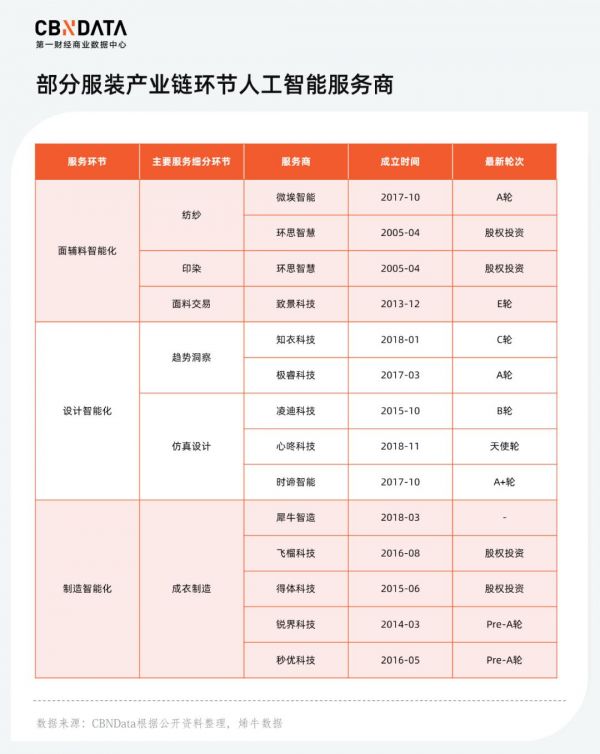 在目前服装供应链中,各环节均有使用人工智能赋能的服务商,其中既有像致景科技、妙优科技、凌迪科技等服务商主要在某一服务环节深耕,还有得体科技、知衣科技、酷特智能等企业提供一站式柔性供应链管理服务平台,利用数字化协作,从设计、打版、采购、生产、交付等一系列环节赋能,从而提高供应链整体运行效率。