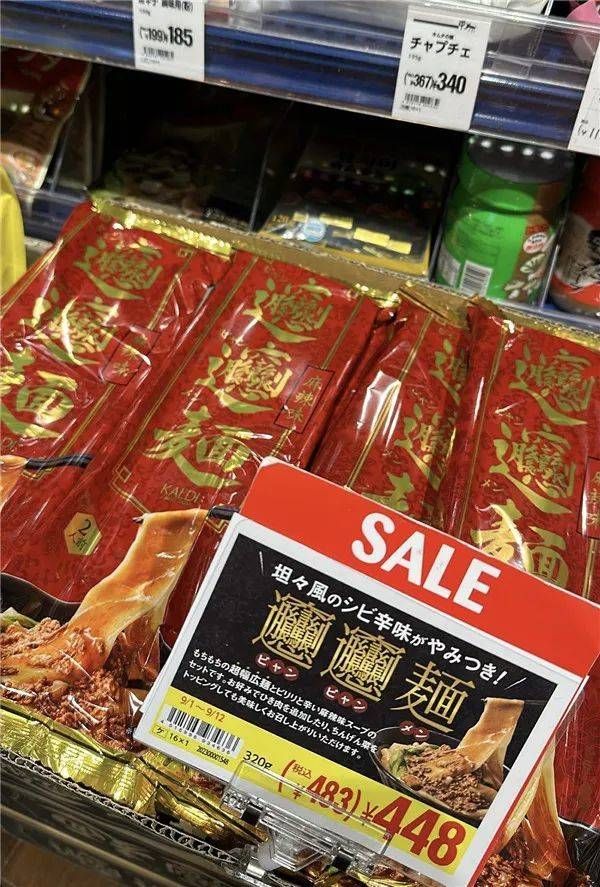 我意识到Biangbiang面几乎取代担担面成为日本人最热爱的中华面条,是因为7-11便利店从三年前开始,每年都会限时推出它的速食产品,常常去买,货架上却已经空了,据说好多店都出现了缺货的情况。2021年,出售咖啡豆和各种世界食材的“Kaldi”商店,也推出了一款Biangbiang面产品,大受欢迎,很快就售罄了。一年后,它乘胜追击,又推出了搭配蚝油和花椒油特制调味包的麻辣口味,被认为是更加接近中国口味。