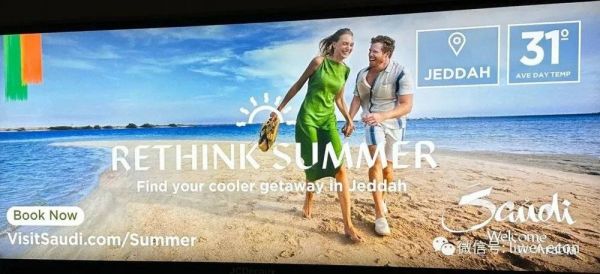 有趣的是,在等待行李处,巨大的屏幕上显示的是欢迎国际游客到沙特阿拉伯王国(下文称沙特)去度假的广告。看来海湾国家也开始“卷”了。
