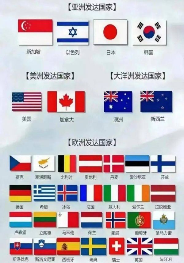 当前,全球37个发达国家中欧洲占据了29个,亚洲4个,美洲2个,大洋洲2个。