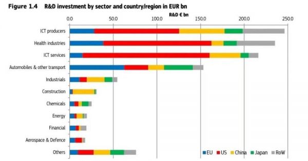 所有2500家公司的总投资额为10939亿欧元,相当于全球企业研发资金的86%,也是首次突破万亿欧元大关。