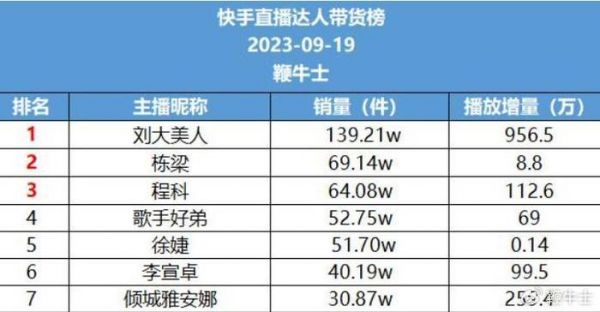 据悉昨日是刘大美人举行婚礼的日子,在这重要的日子直播带货,成功吸引巨大流量。刘大美人共开启两场直播,观看人次达20万,场均销量69万,场均销售额1.75亿,更是借此登上快手直播带货榜单第一名。