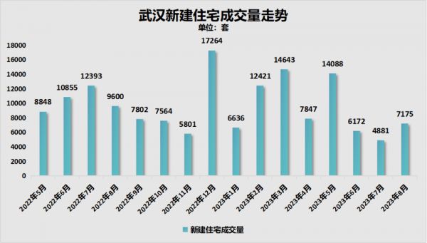 8月份武汉的成交量有所反弹,环比增幅很大。但相比于过往,且不论与最好的时候比,和去年那种光景下的成交量相比,仍显不足。