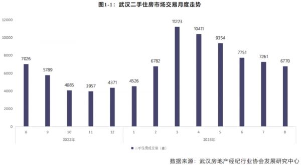 二手房成交量则在3月份见顶之后,一路向下,8月份武汉二手房成交量已经跌破了7000套,只有6770套。
